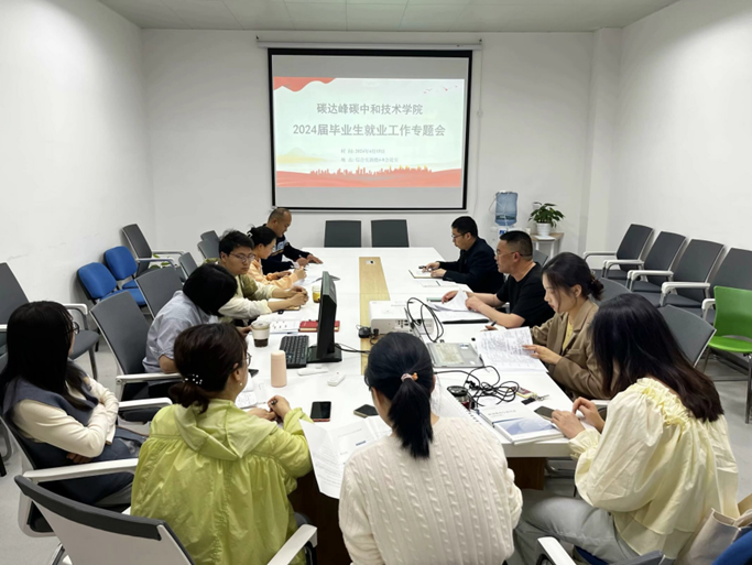 会上领学了《关于做好2024届毕业生就业工作的通知》(川工商院﹝2024﹞8号)文件精神,传达了《双碳公司2024届毕业生就业工作方案》,通报了公司目前毕业生就业数据、签约专业对口情况、访企拓岗成效等。