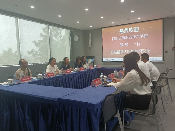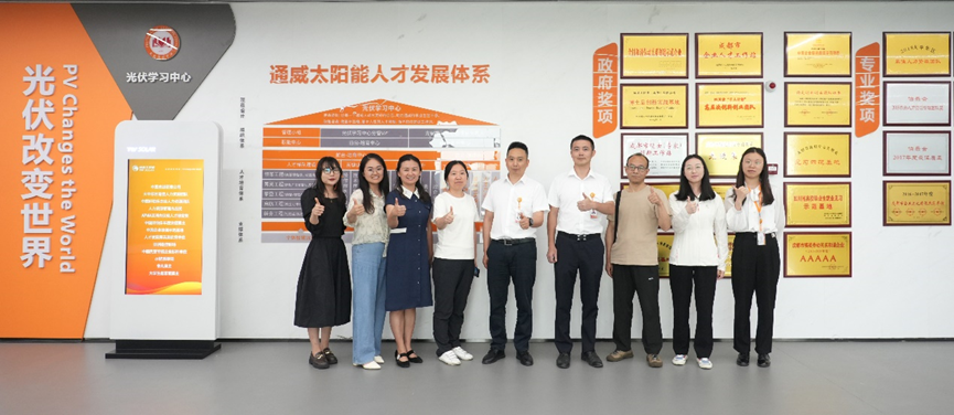 2023年6月13日,双碳公司经理邱春丽带队,一行6人赴通威太阳能(成都)有限公司开展调研,双方就人才培养的需求、如何开展校企合作等内容进行洽谈。