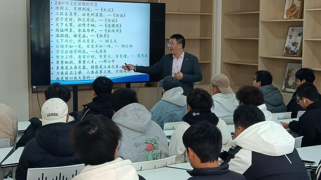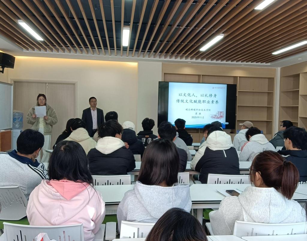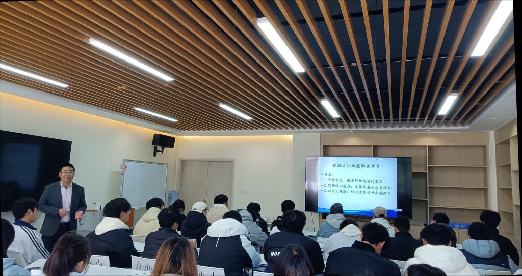 为深入学习贯彻习近平总书记关于“把中华优秀传统文化传承发展好”“培养德智体美劳全面发展的社会主义建设者和接班人”的重要指示精神,推动中华优秀传统文化与素质教育深度融合。11月20日,双碳公司在6号员工公寓一站式社区教室成功举办“传统文化赋能职业素养”主题讲座。讲座由双碳公司党总支书记梁胜主讲,全校40余名员工代表参加讲座。讲座以“以文化人,以礼修身”为核心主线,立足党建引领素质教育的根本方向,聚焦中华优秀传统文化与职业素养的深度融合。