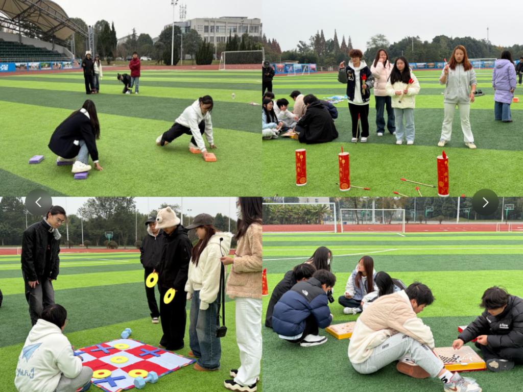 本次运动会集竞技、趣味、协作于一体,项目设置丰富多样。既有考验团队默契与协调性的“两人三足”接力、紧张刺激的“摸石过河”接力赛,也有展现精准投掷技巧的“投壶”和策略与敏捷并重的“扔沙包”攻防战;既有需要个人技巧稳定发挥的“踢毽子”单项与团队赛,也有锻炼思维与策略的象棋、五子棋、极速三子棋和飞行棋等棋类对弈。